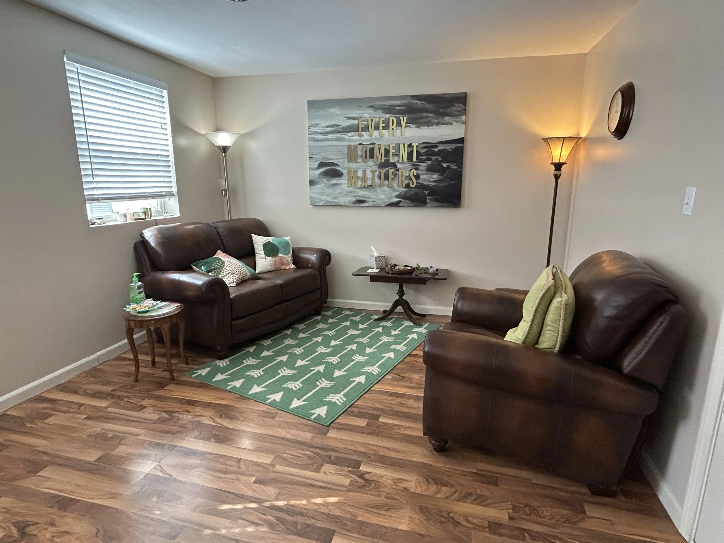You can choose where your appointments will take place, whether in my soothing office environment with complimentary tea and water, virtually or outside on a walk or in a local park.